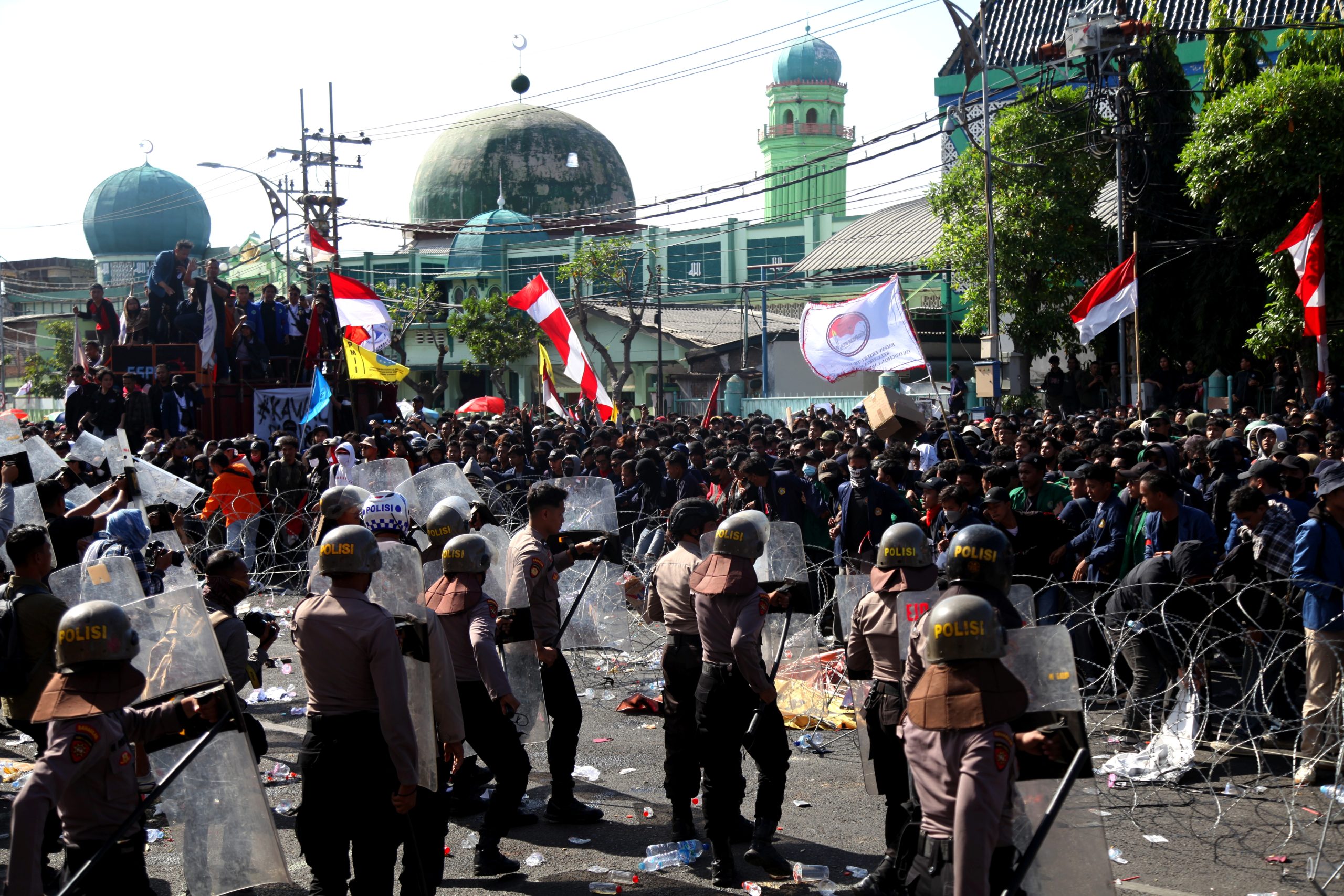 Actasurya.com – Ribuan masyarakat sipil dari berbagai elemen seperti mahasiswa hingga buruh menggelar aksi “Darurat Demokrasi” untuk mengawal putusan Mahkamah Konstitusi (MK) di depan Gedung Dewan Perwakilan Rakyat Daerah (DPRD) Provinsi Jawa Timur, di Jalan Indrapura nomor 1 Krembangan, Surabaya, Jumat, (23/08).