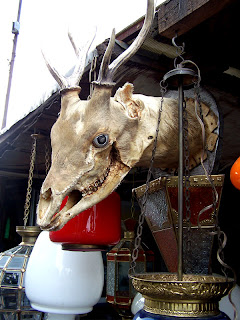 Saat memasuki lapak, aroma antiknya begitu kental terasa. Banyak barang yang belum pernah terdefinisi oleh indera penglihatan orang modern, ada di sana. Mulai dari pernak-pernik mungil, gelas-gelas porselen atau perunggu, botol-botol bekas, sampai meubel lawas. Kita seakan diajak berkelana melintas zaman.