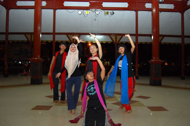 Yang beraksi di tengah pendopo berganti. Musiknya pun tak lagi sama. Beberapa remaja dengan selendang dan gerakan yang lebih gemulai berlatih tari gandrung dor, tarian tradisional asal Banyuwangi. Namun kedua kelompok usia itu tergabung dalam satu sanggar tari, Bina Tari Jawa Timur (BTJT). Pada 14 Mei nanti, mereka akan tampil di Dinas Pendidikan Propinsi Jawa Timur.