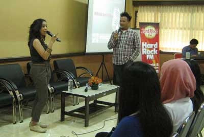 Sementara itu, peserta yang hadir menyambut baik acara ini. Hal itu terlihat dari semangat dan interaksi mereka dalam menyimak acara dari awal hingga akhir. “Saya tertarik akan acara ini karena saya berkeinginan menjadi penyiar radio. Apalagi acaranya juga tak membosankan,” kata Cathy, mahasiswi semester dua. N/F : Ayu