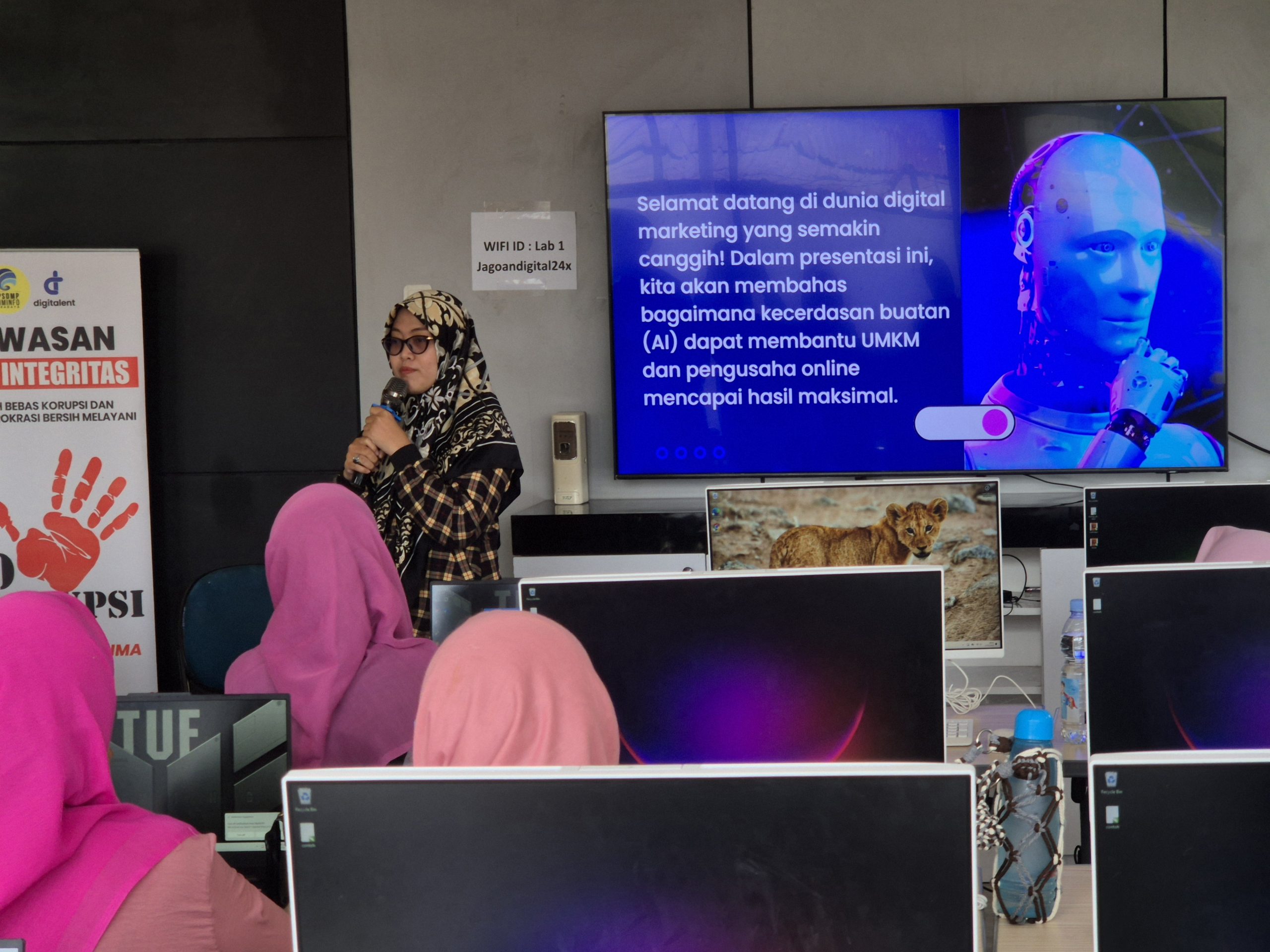 Ucik Rochmayanti saat memberikan materi pemanfaatan AI untuk promosi produk di media sosial pada pelatihan revolusi digital dengan AI di BPSDM Kominfo Surabaya, Selasa 17/12/24. Foto: Dok. Pribadi