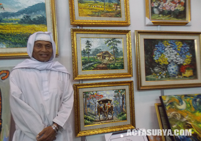 actasurya.com – Wajahnya tampak keriput, kulitnya tak lagi bersinar. Di usianya yang mencapai 71 tahun, tak sedikit pun melunturkan semangatnya tuk berkarya. Menjadi pelukis spiritual ilahiyah, mampu membuatnya bertahan hingga detik ini.