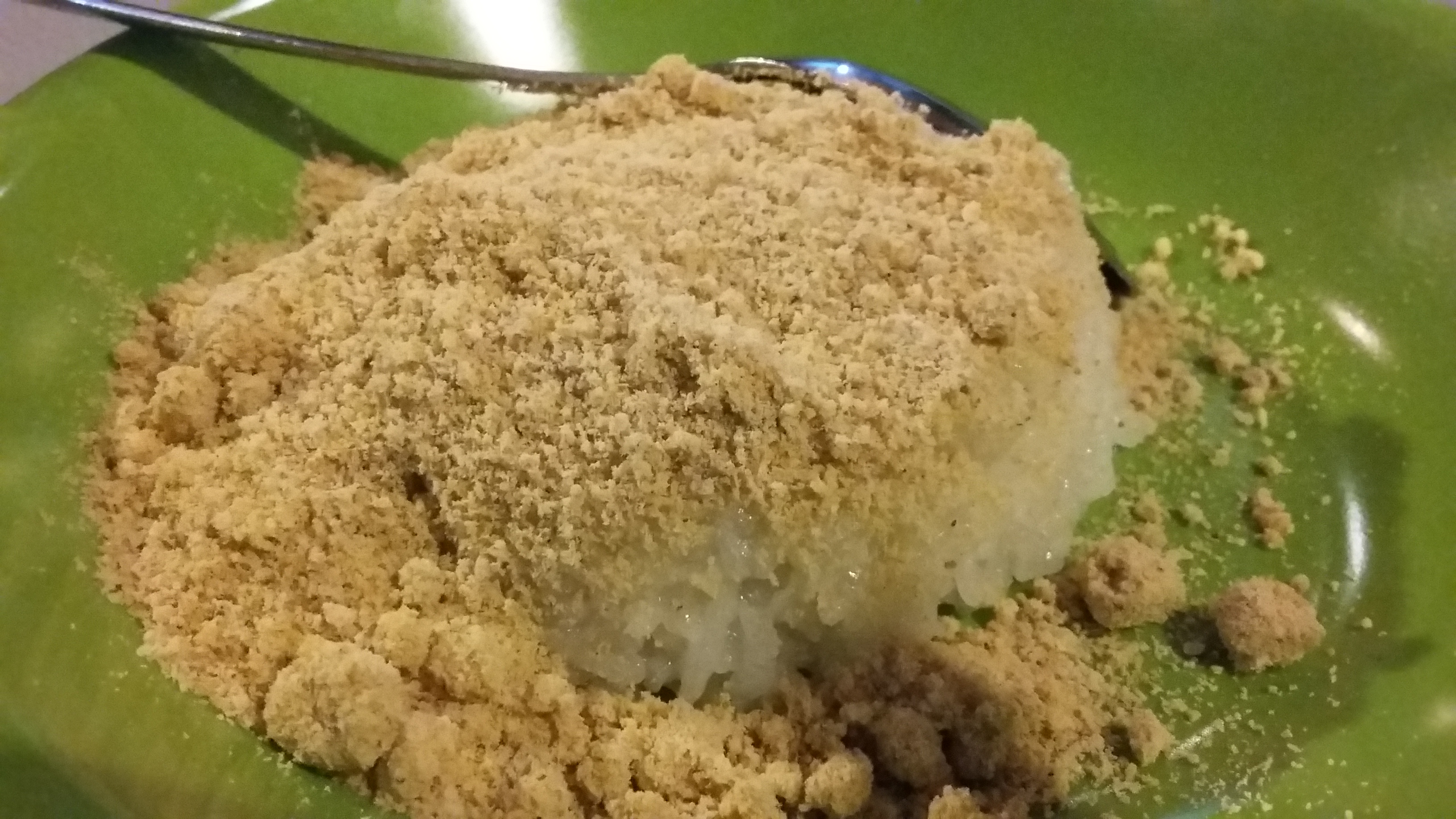 “Biasanya kalo orang-orang menyajikan ketan ini bubuknya dipisah, jadi makannya hanya ditutul. Tapi di sini kita mencampur bubuk itu, agar penikmat ketan ini puas dengan bubuk ketannya,” ujar Andre.