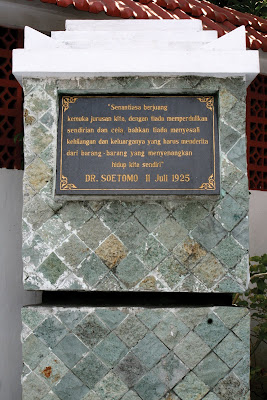 Ketika melangkahkan kaki ke dalamnya, rasa kagum dan bangga muncul dengan sendirinya. Tegap, tatapan penuh harapan, tangan kanan diangkat rendah, serta tangan kiri membawa gulungan kertas, begitulah patung pahlawan Dr. R. Soetomo yang dikenal dengan monumen Pak Tom itu berdiri kokoh di pelataran Gedung Nasional Indonesia, Bubutan Kulon, Surabaya.