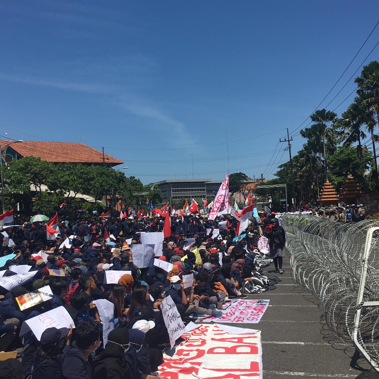Actasurya.com – Matahari semakin meninggi, gerombolan massa pun semakin banyak yang berdatangan ke Gedung Dewan Perwakilan Rakyat Daerah (DPRD) Jatim, Kamis (26/9).